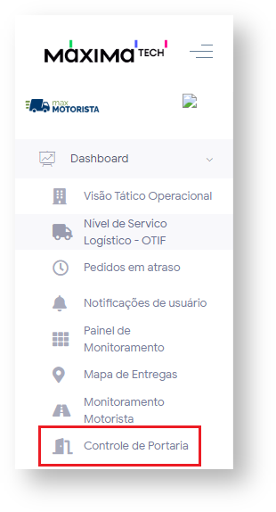 Para acessar o painel de controle de portaria, basta abrir o menu Dashboard que fica no canto superior esquerdo, e depois selecionar a opção Controle de portaria,