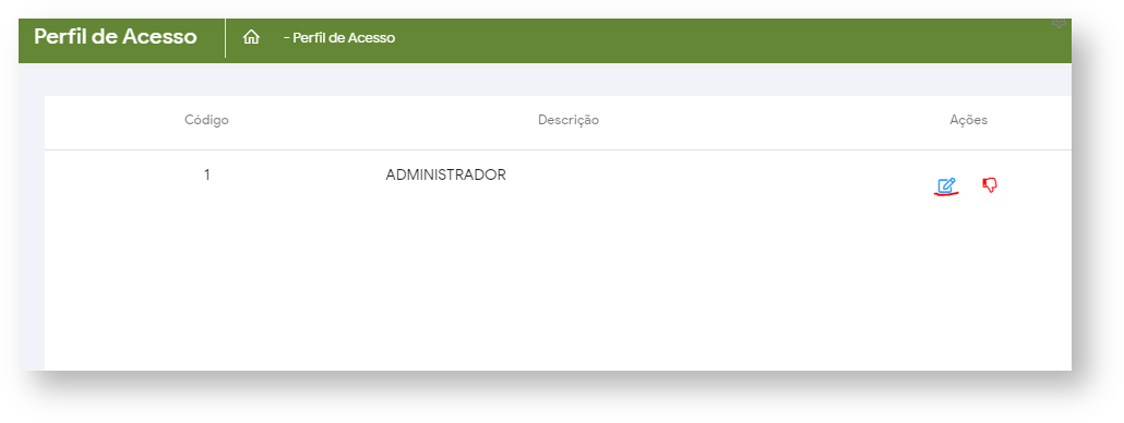 Editar as permissões de acesso de um perfil de acesso clicando no botão para editar,