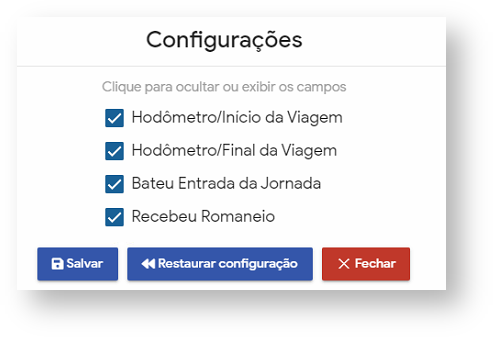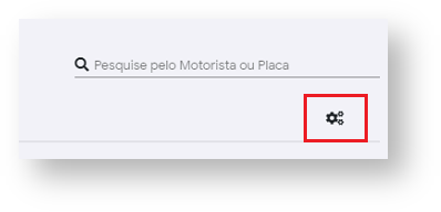 Caso não trabalhe com o controle de alguma dessas informações, é possível editar quais serão exibidas para o controle de portaria, para editá-las basta clicar no ícone da engrenagem que fica abaixo da opção de pesquisar pelo motorista ou placa