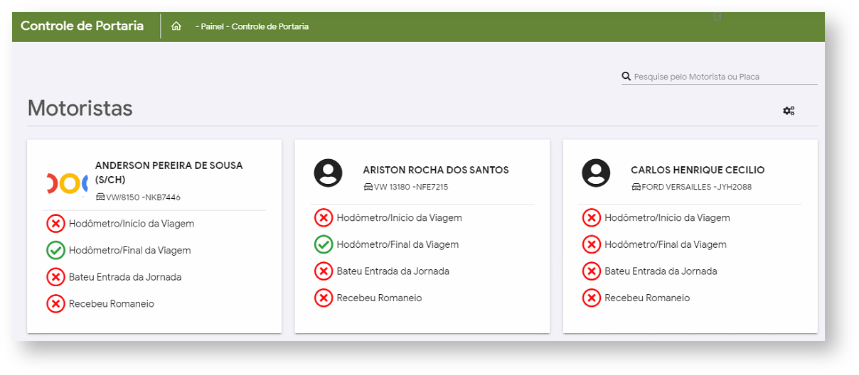 Feito isso, a equipe da guarita poderá fazer o controle de liberação dos motoristas para início de viagem.