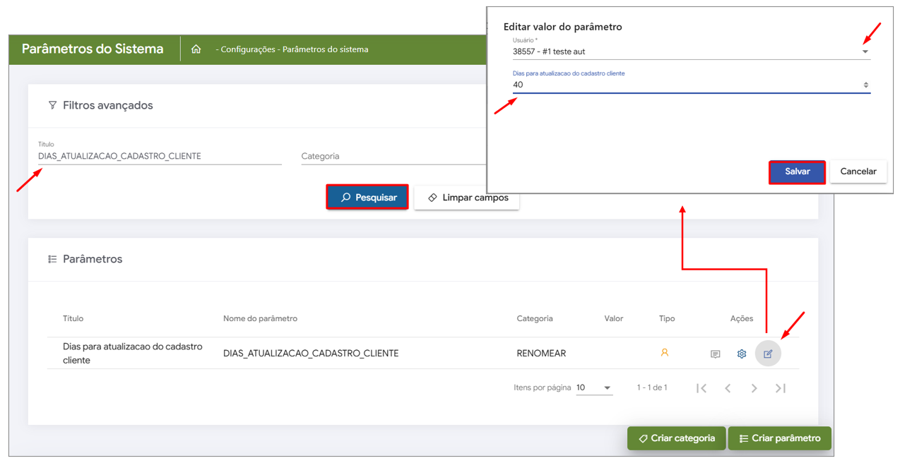 5- Busque pelo Parâmetro DIAS_ATUALIZACAO_CADASTRO_CLIENTE
