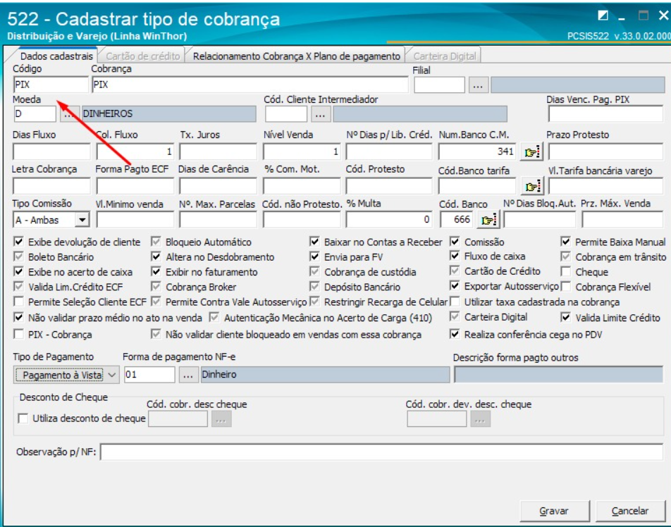 1- Para pix, a cobrança tem que ter o código igual a "PIX"