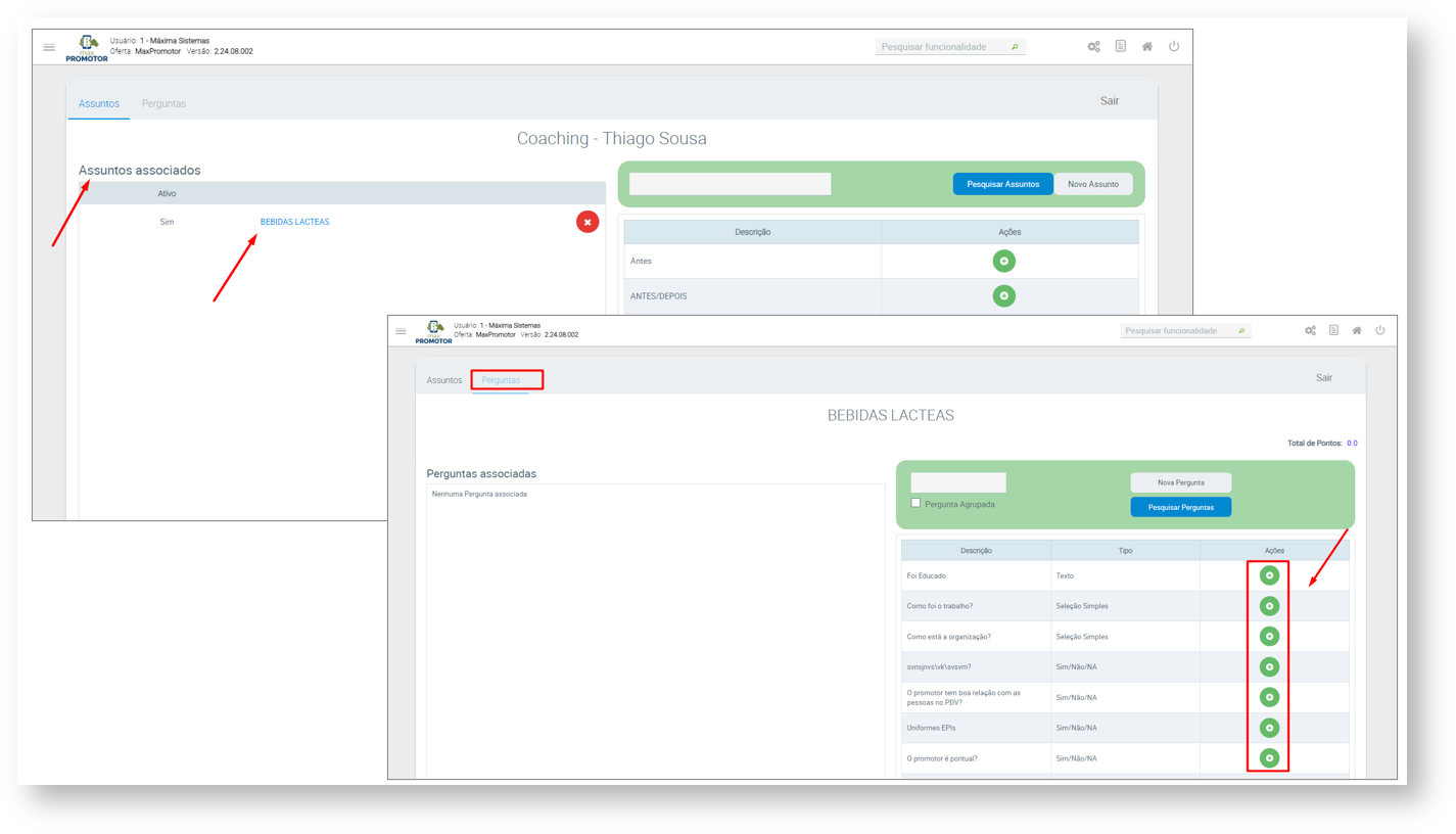 Cada assunto Associado poderá conter perguntas distintas e por isso é necessário selecionar o Assunto.