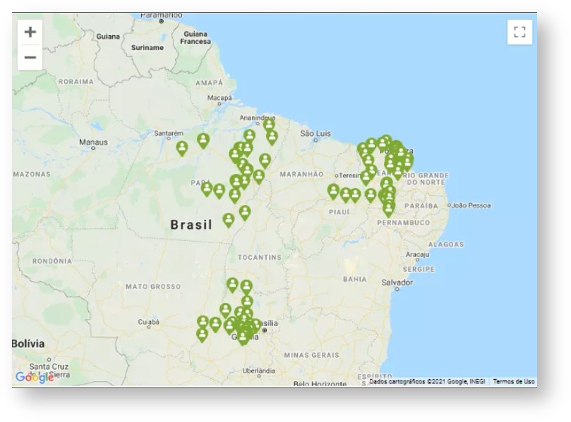 é possível aumentar ou diminuir o zoom do mapa, possibilitando uma visão mais detalhada do local onde o vendedor está.