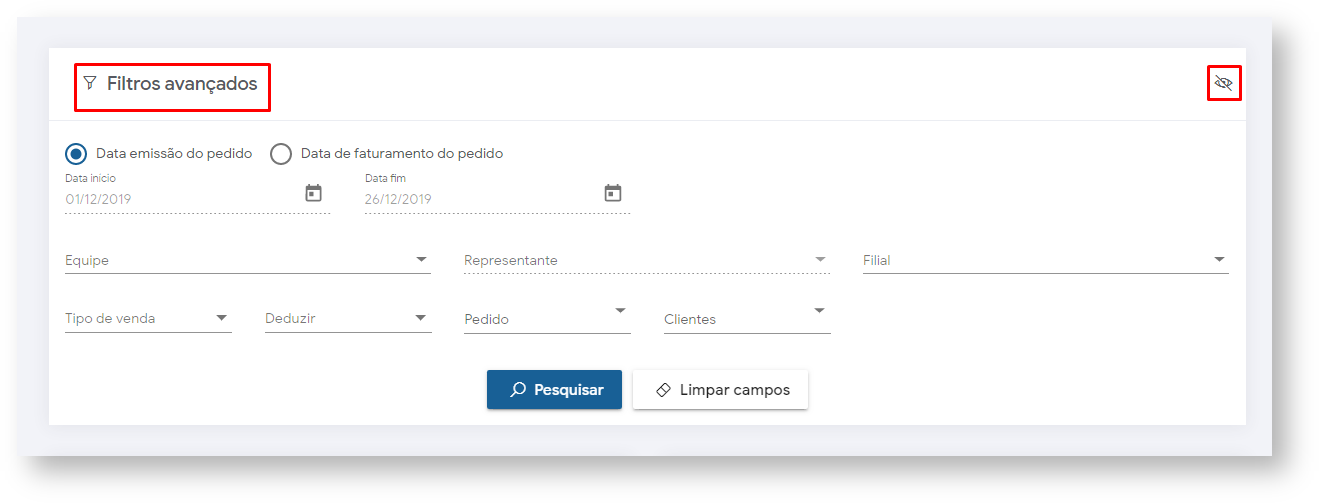 Clique no canto superior direito da tela no ícone  , será aberto um filtro para que preencha conforme deseja que a busca seja realizada.