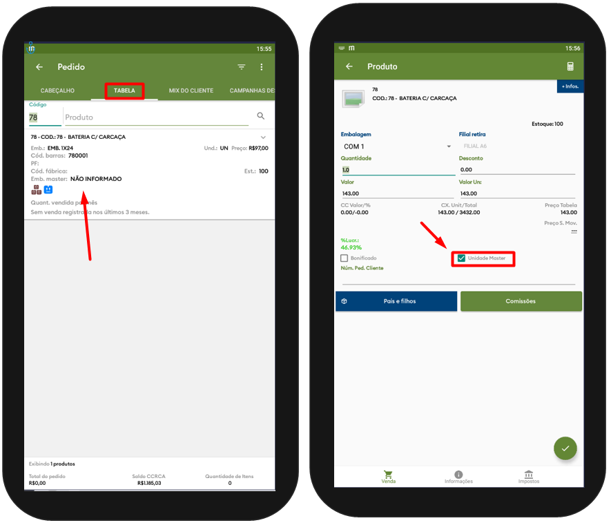 2.1 A configuração do parâmetro não é obrigatória, mas ao habilitar o parâmetro FORCAR_UNIDADE_MASTER_PRODUTO a opção de Embalagem Master na tela de negociação do produto já virá marcada, se habilitar o FORCAR_CONTROLE_CAIXA_FECHADA a opção Embalagem Master no Cabeçalho do Pedido também já virá marcada, não ficando a cargo do vendedor marcar a opção. Na tela inicial da central de configurações do maxPedido menu lateral