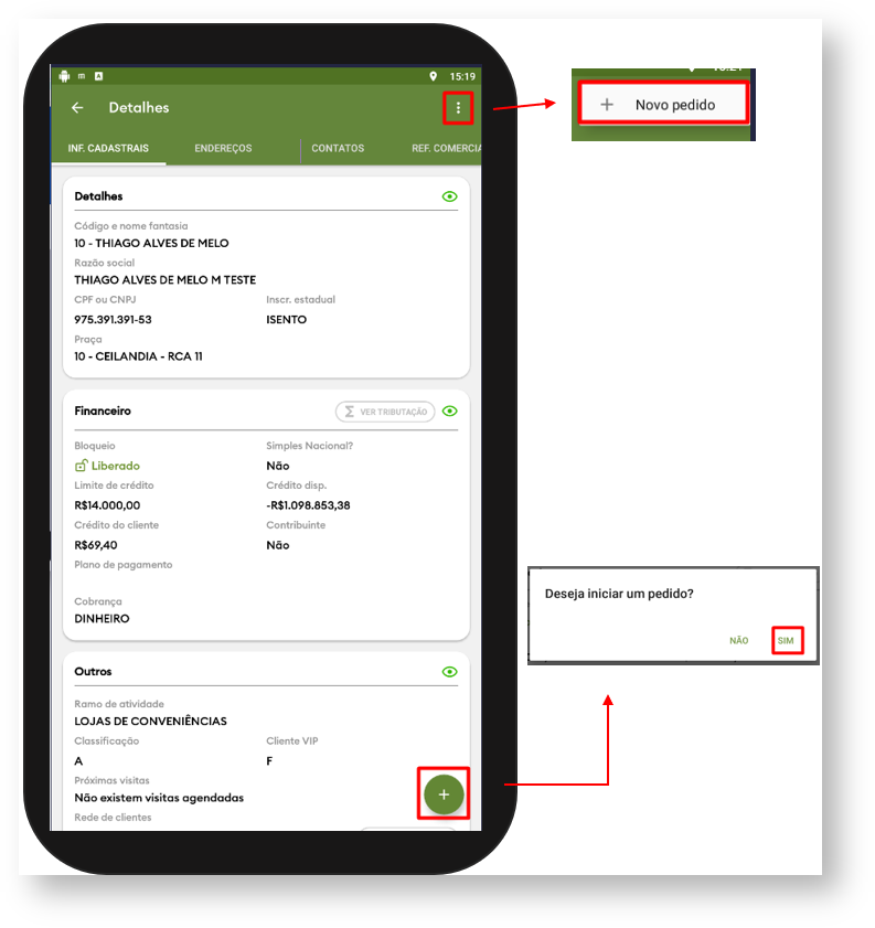 2.2 Selecione o cliente para iniciar um pedido, arrastando ou clicando no mesmo.