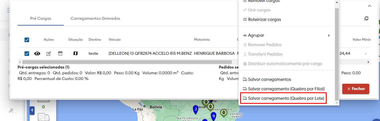 - Totalizador Pré-carga: Traz um totalizador da carga que esta sendo montada com os dados.