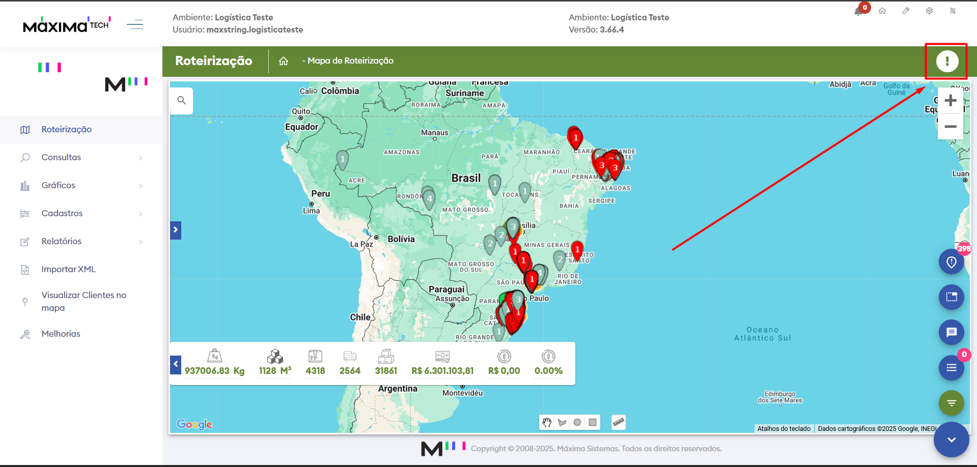 - Após realizar o filtro, clique no ícone de "exclamação" para abrir as legendas.