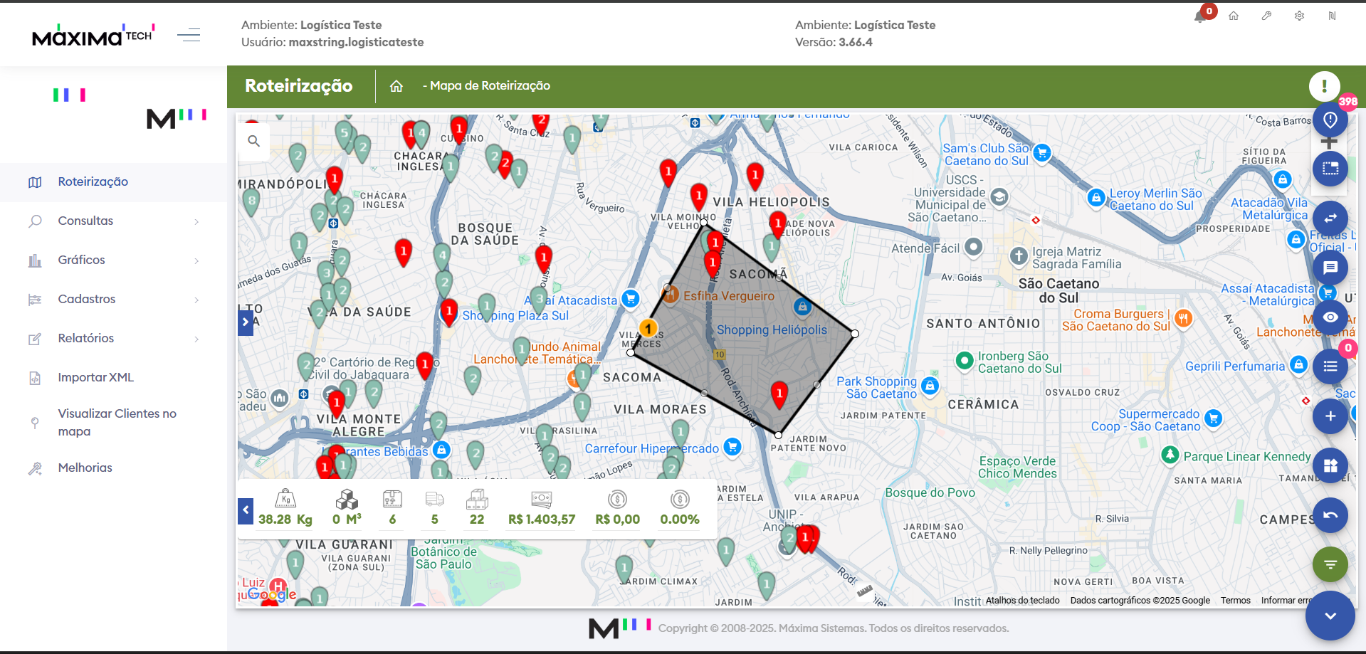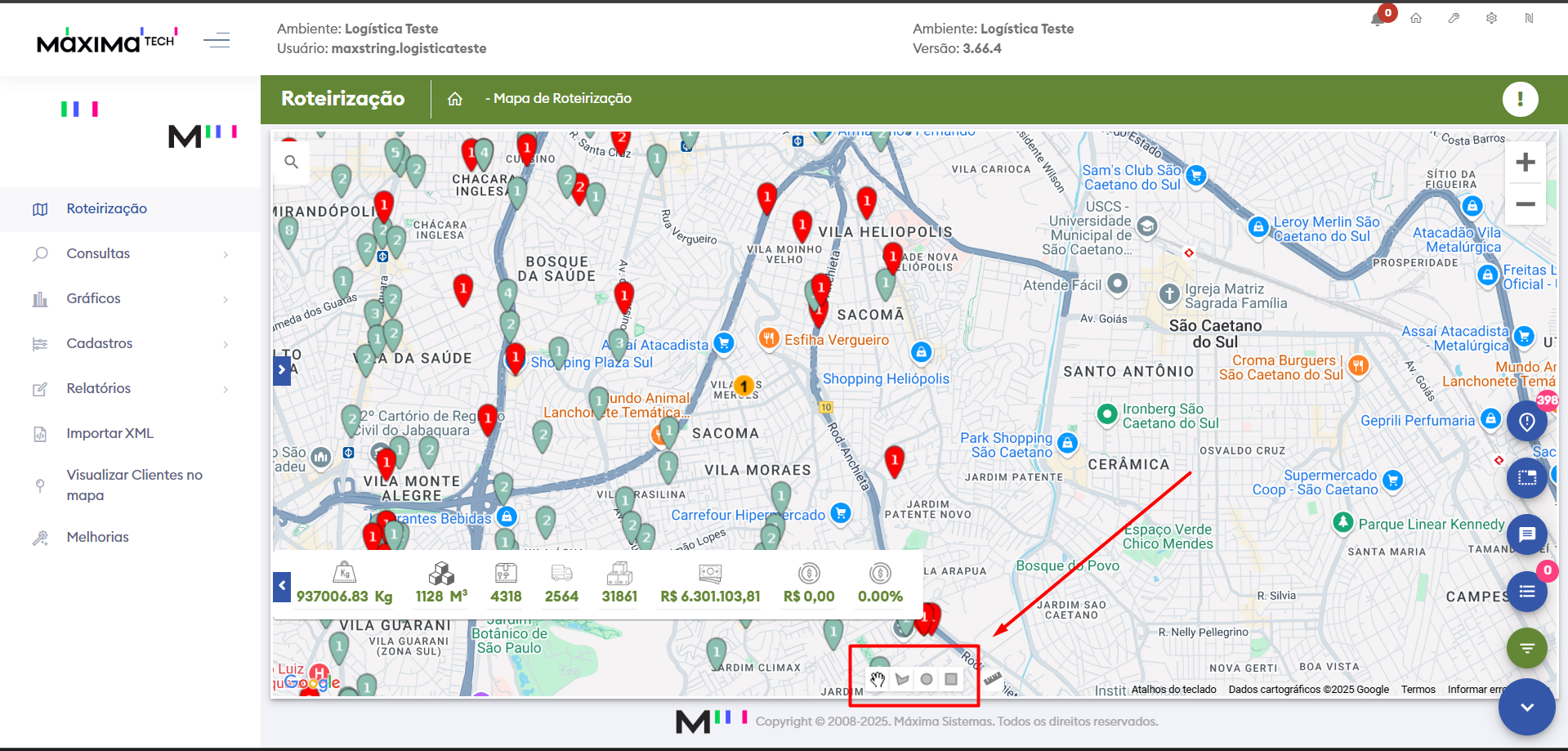 - Para montar um carregamento com estas reentregas, basta seleciona-las por meio das ferramentas de seleção.