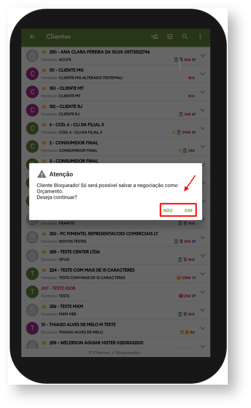 Venda para cliente bloqueado, como permitir ou não?Voltar
