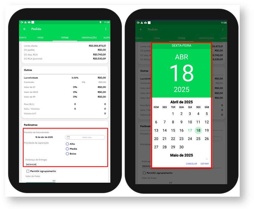 | Conforme informado acima a obrigatoriedade de preencher essa informação vai depender se o parâmetro OBRIGAR_PREVISAO_FATURAMENTO está habilitado ou não. |