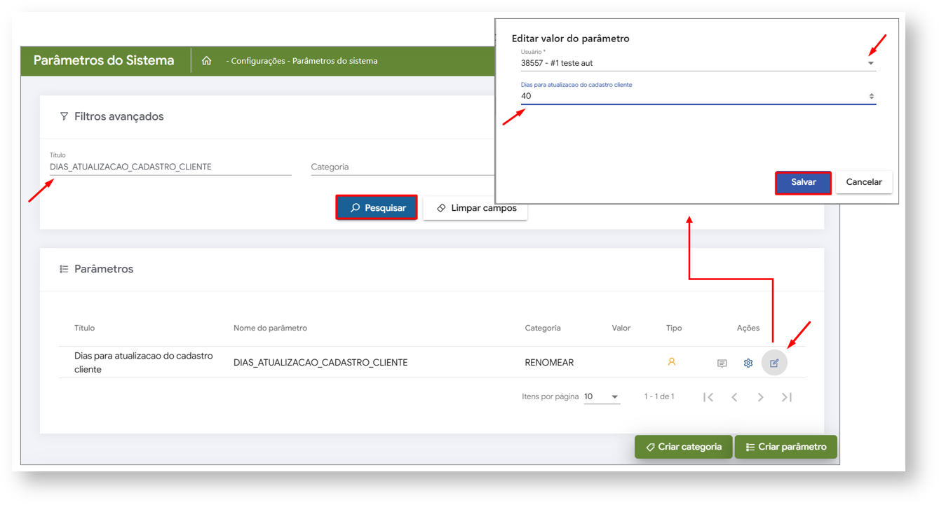 5- Busque pelo Parâmetro DIAS_ATUALIZACAO_CADASTRO_CLIENTE