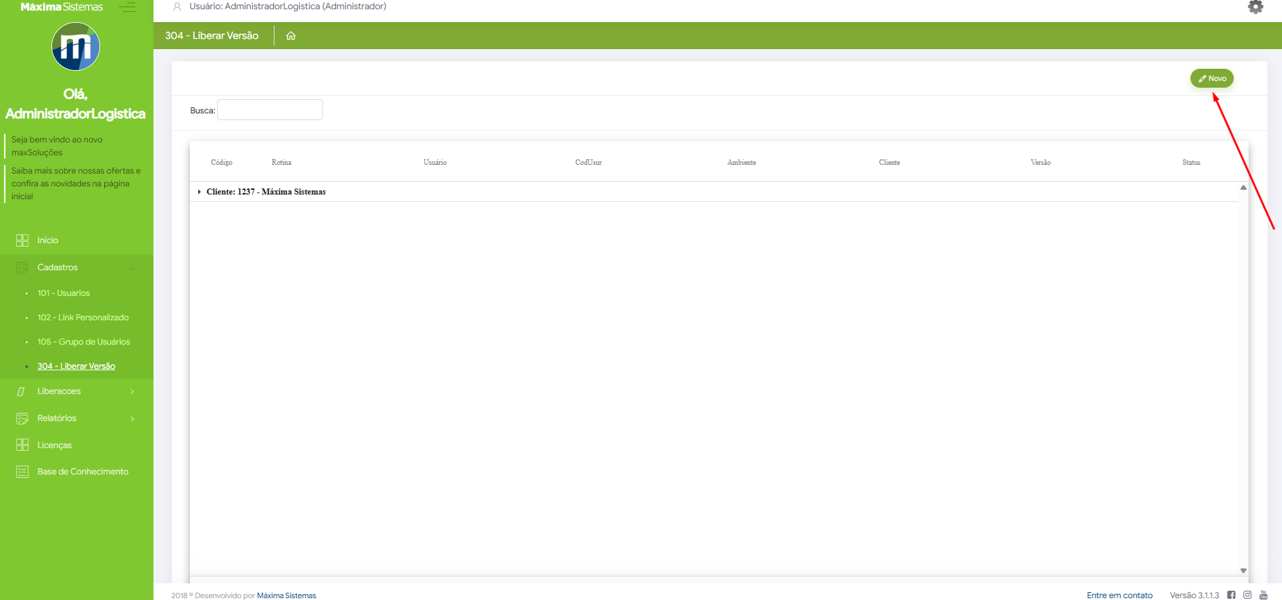 Image Modified2. Ao acessar a tela de liberação de versão clicar em Novo: