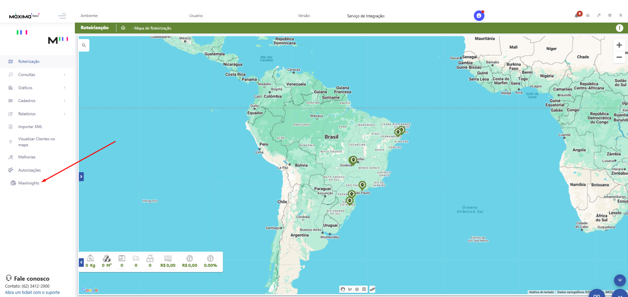 - Para abrir o maxInsights através do maxRoteirizador ou do maxMotorista basta expandir o menu lateral na respectiva solução e clicar no ícone: