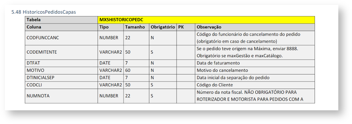 Essa informação pode ser verificada em nosso layout de Integração item 5.48 Histórico Pedidos Capas