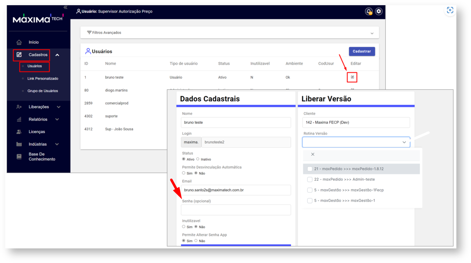 3- Selecione o usuário representante desejado e clique sobre o ícone de Editar