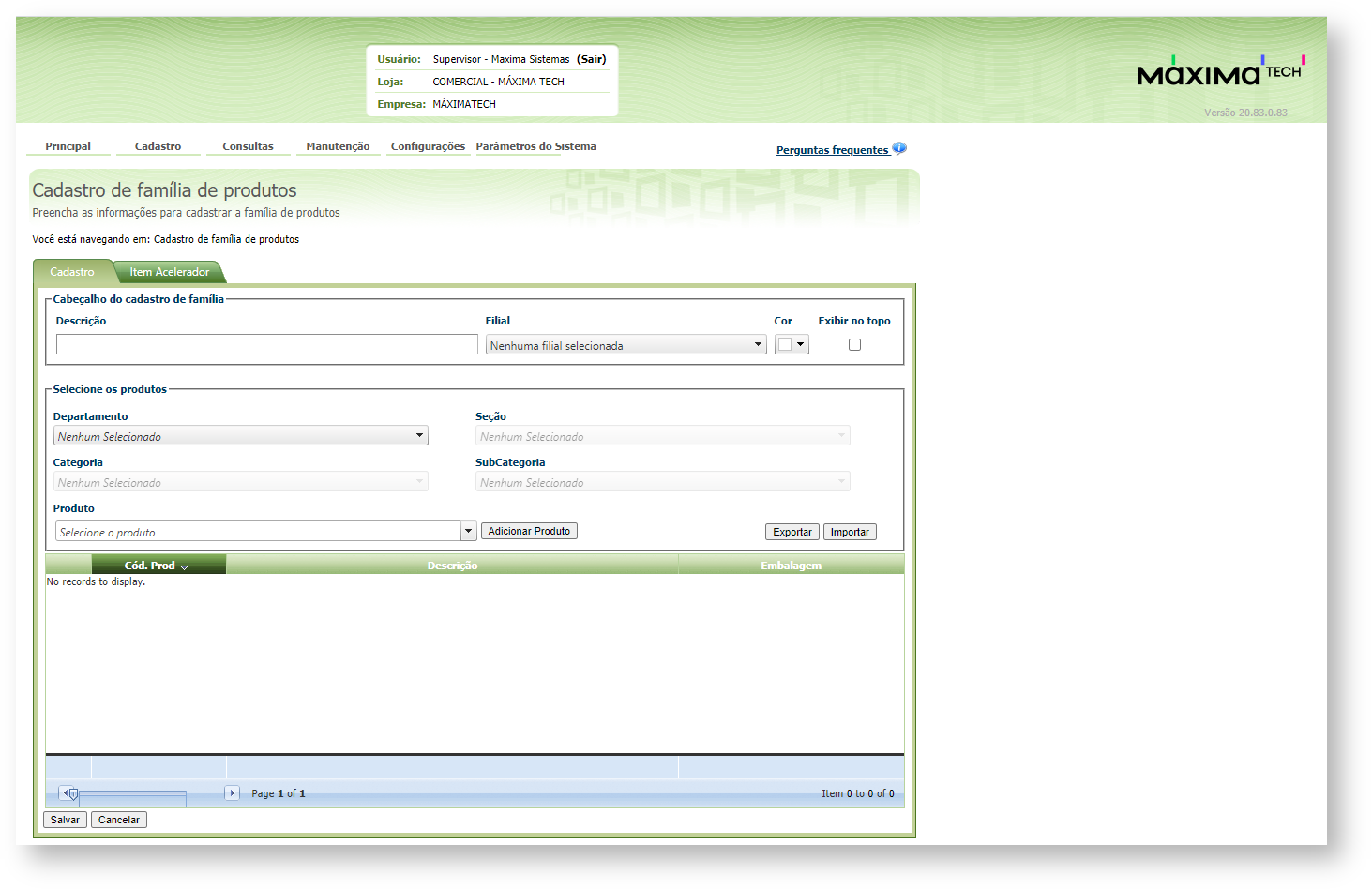 O campo Valor Mínimo é referente ao valor mínimo que deverá ser atingido fazendo a soma do valor de todos os produtos pertencentes a essa família para que seja contabilizada como válida (opcional).