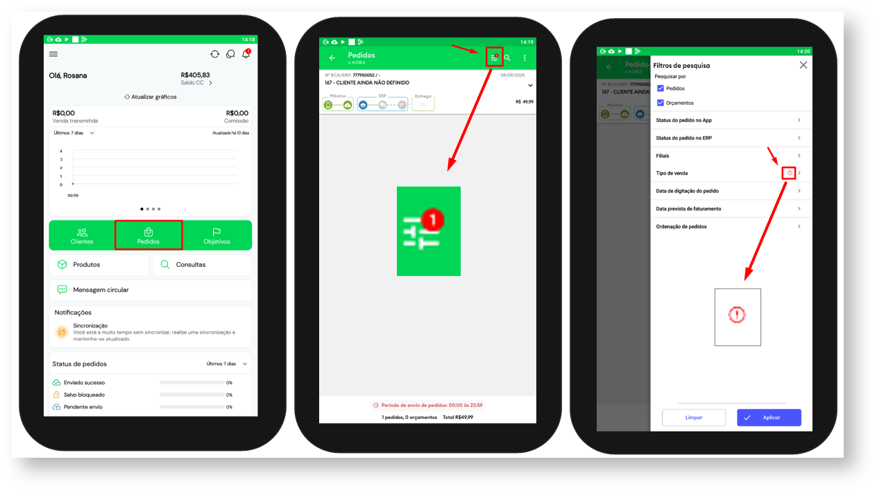 | Caso o vendedor identifique algum pedido que não esteja aparecendo na listagem, pode ser devido a modificação no filtro, nesse caso para validar limpe o filtro e verifique a listagem novamente. |