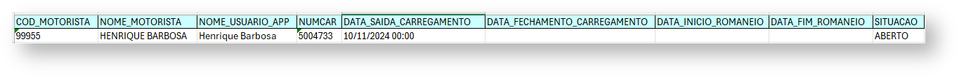 Últimos Carregamentos por Motorista → O relatório monitora o status de carregamentos e romaneios dos motoristas, incluindo datas de operação e situação do processo.
