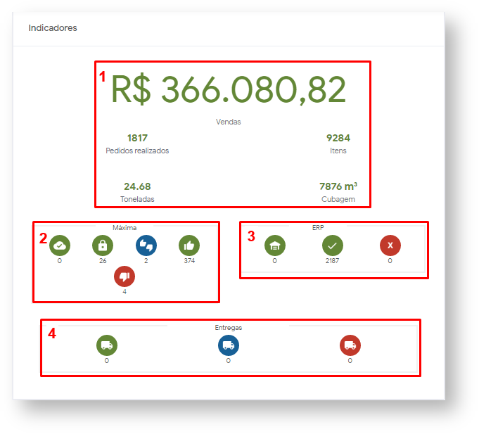 Abaixo informamos o que cada item apresentado no card indicadores significa de forma detalhada.