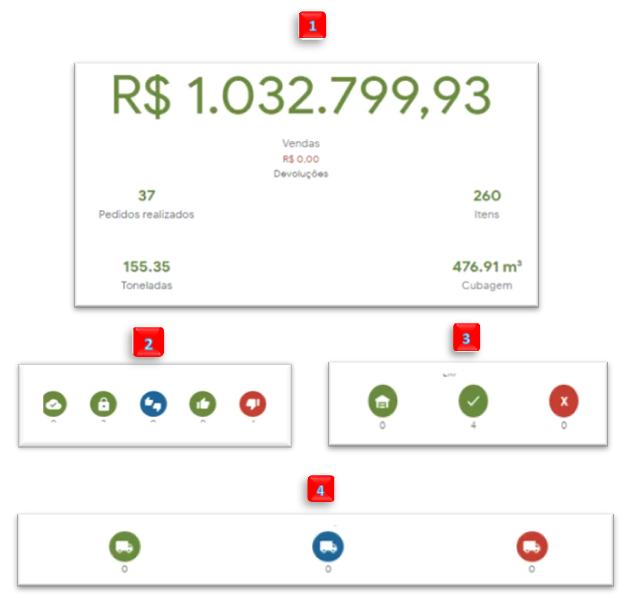 Abaixo informamos o que cada item apresentado no card indicadores significa de forma detalhada. Através das informações nos cards apresentadas o gestor e ou supervisor poderá acompanhar as informações de venda, status dos pedidos na máxima e ERP e também referente a entrega, assim auxiliando na tomada de decisões e ações estratégicas.
