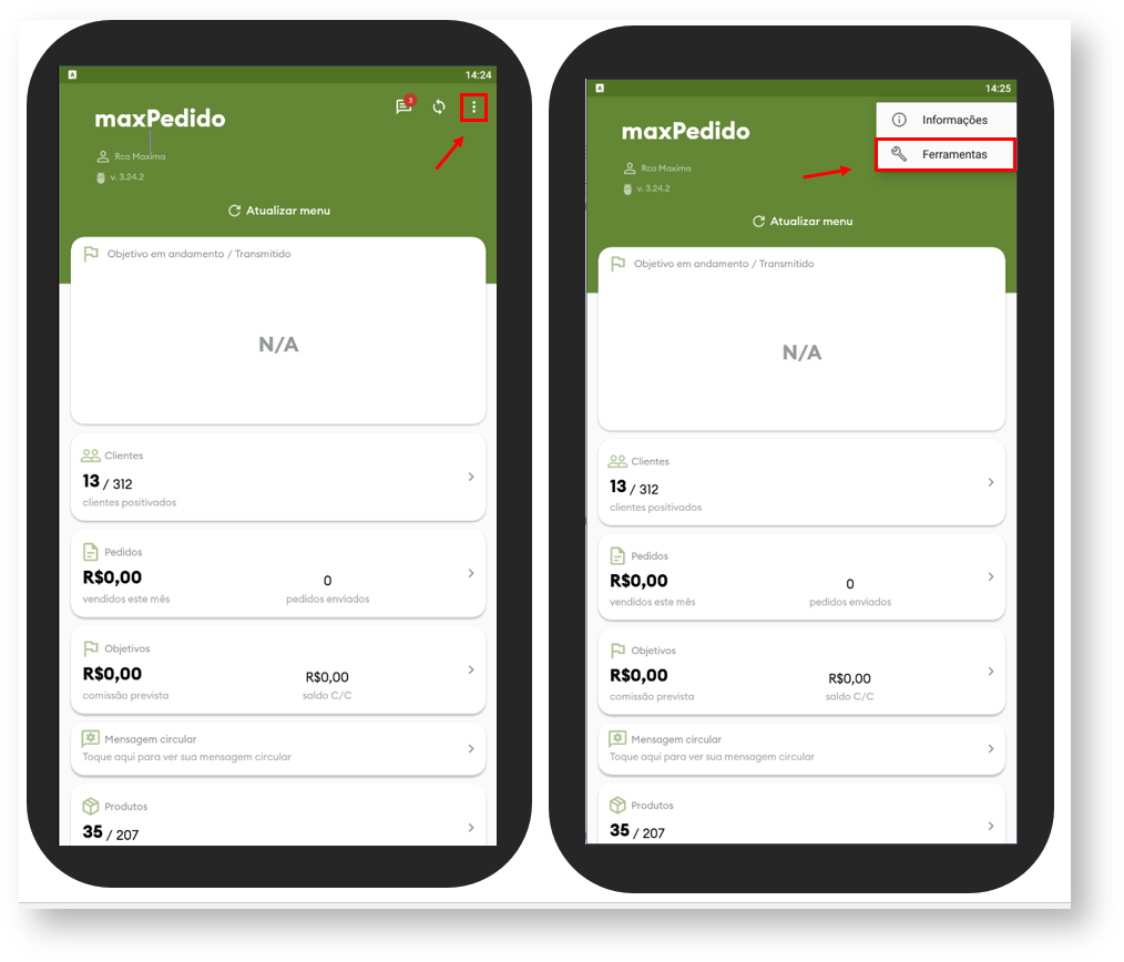 1.1 Para processar as imagens vamos acessar o menu superior direito no aplicativo e logo em seguida clicar em ferramentas
