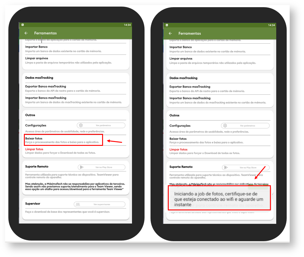 1.2 Depois clique em Baixar fotos, será forçado o processamento das imagens e elas serão baixadas no aplicativo.