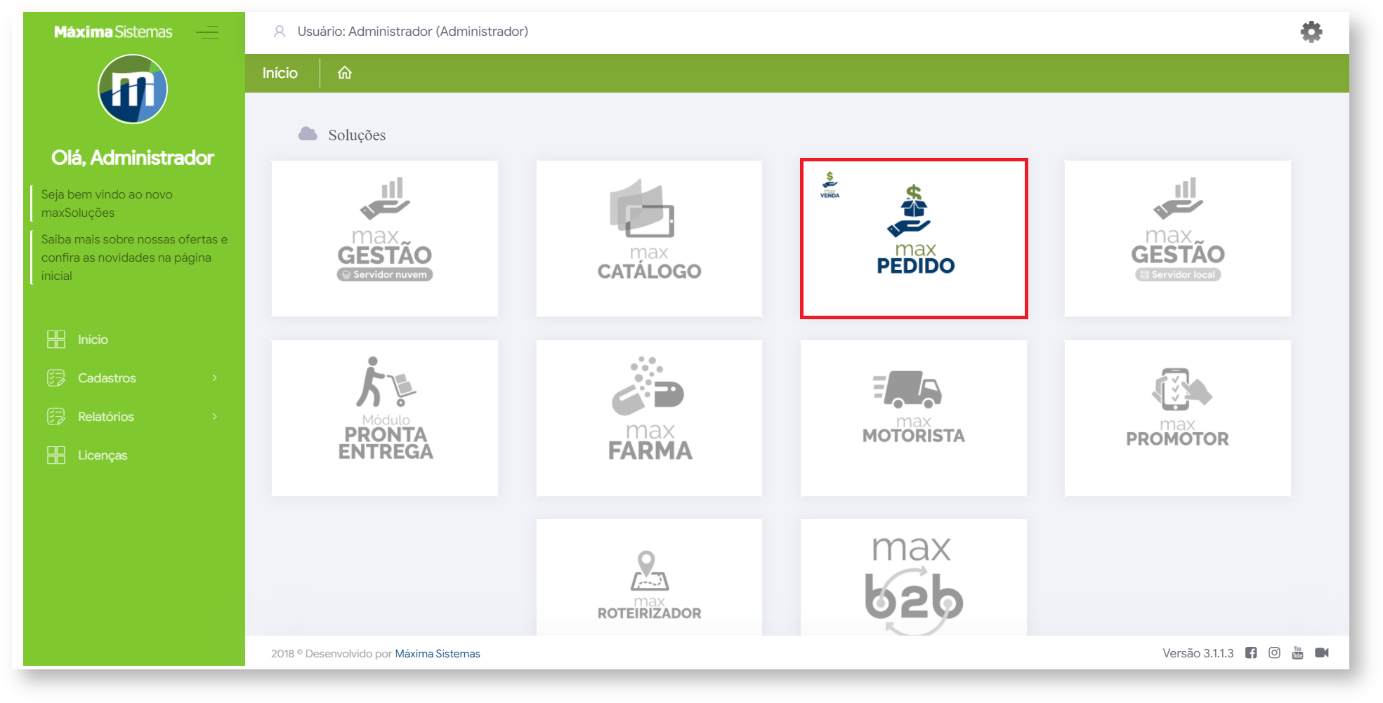 1.1 Após acessar o maxSoluções, clique em maxPedido