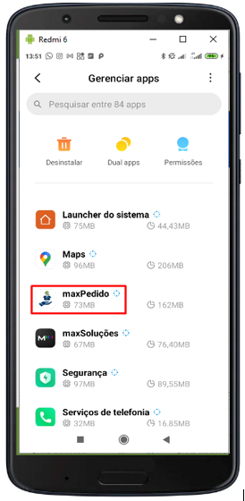 1.3 - Busque pelo aplicativo do maxPedido e clique para ativa-lo;