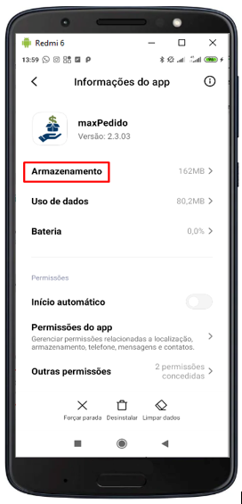 1.4 - Ao entrar no aplicativo, clique na opção de Armazenamento;