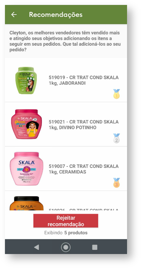 2.1 No aplicativo do MaxPedido, ao finalizar um pedido, será apresentado a recomendação de produtos levando em consideração os produtos adicionados ao pedido.