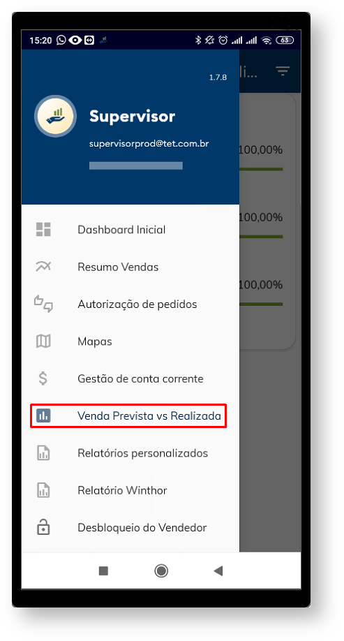 , após clicar no mesmo selecione Venda prevista Vs Realizada;