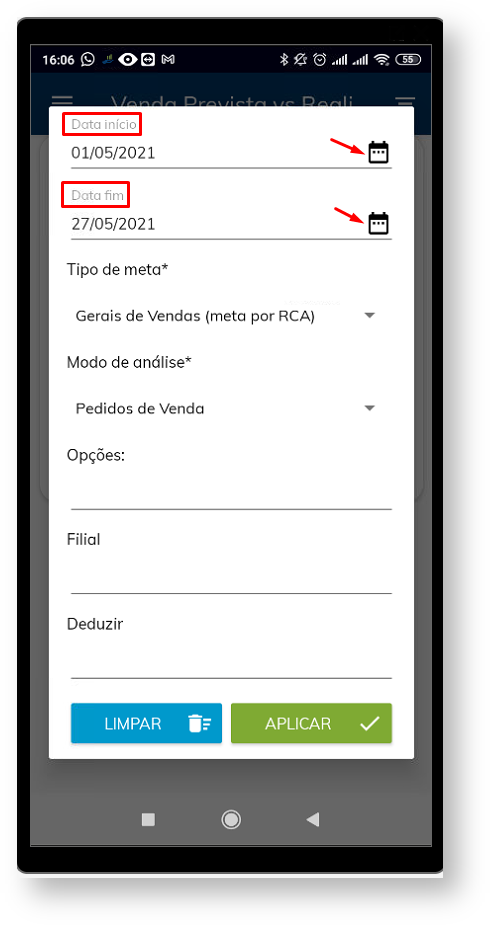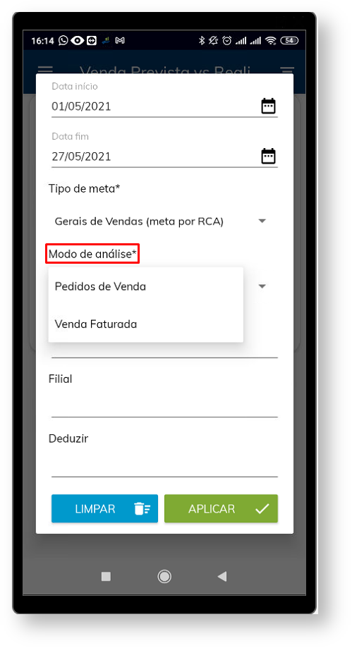 1.2 - Na tela de Venda Prevista vs Realizada do lado direto da tela clique em filtro