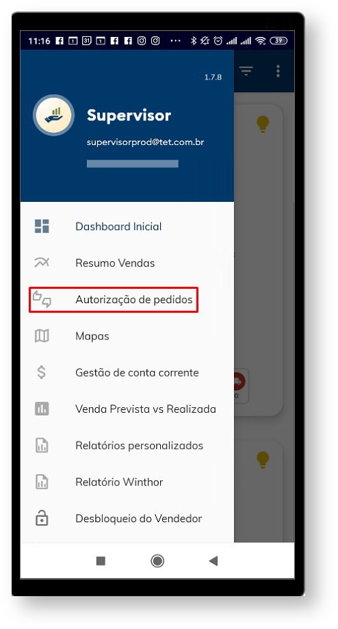no canto esquerdo da tela e posteriormente em Autorização de pedidos;