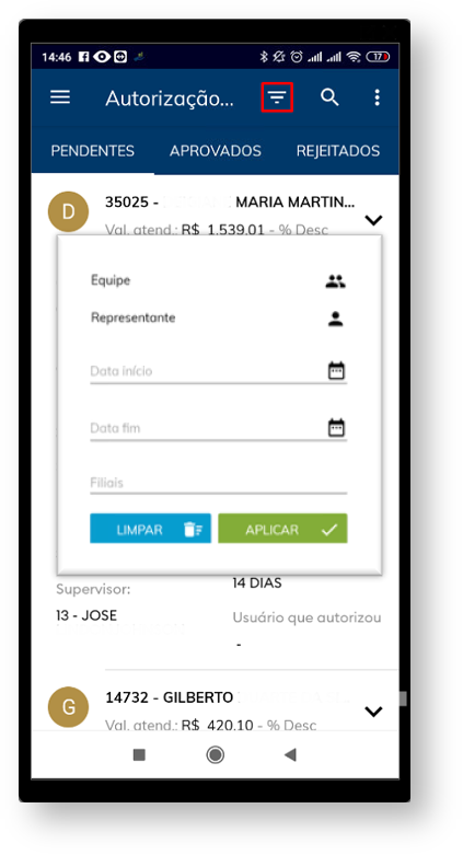 3.0 - Como pesquisar os pedidos para autorização por equipe ou representante e data.