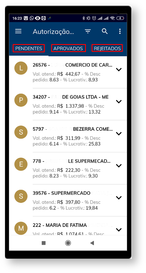 1.2 - Já dentro da aba Autorização de pedidos é possível ver os pedidos pendentes para serem liberados ou não, os já aprovados e os que foram rejeitados;
