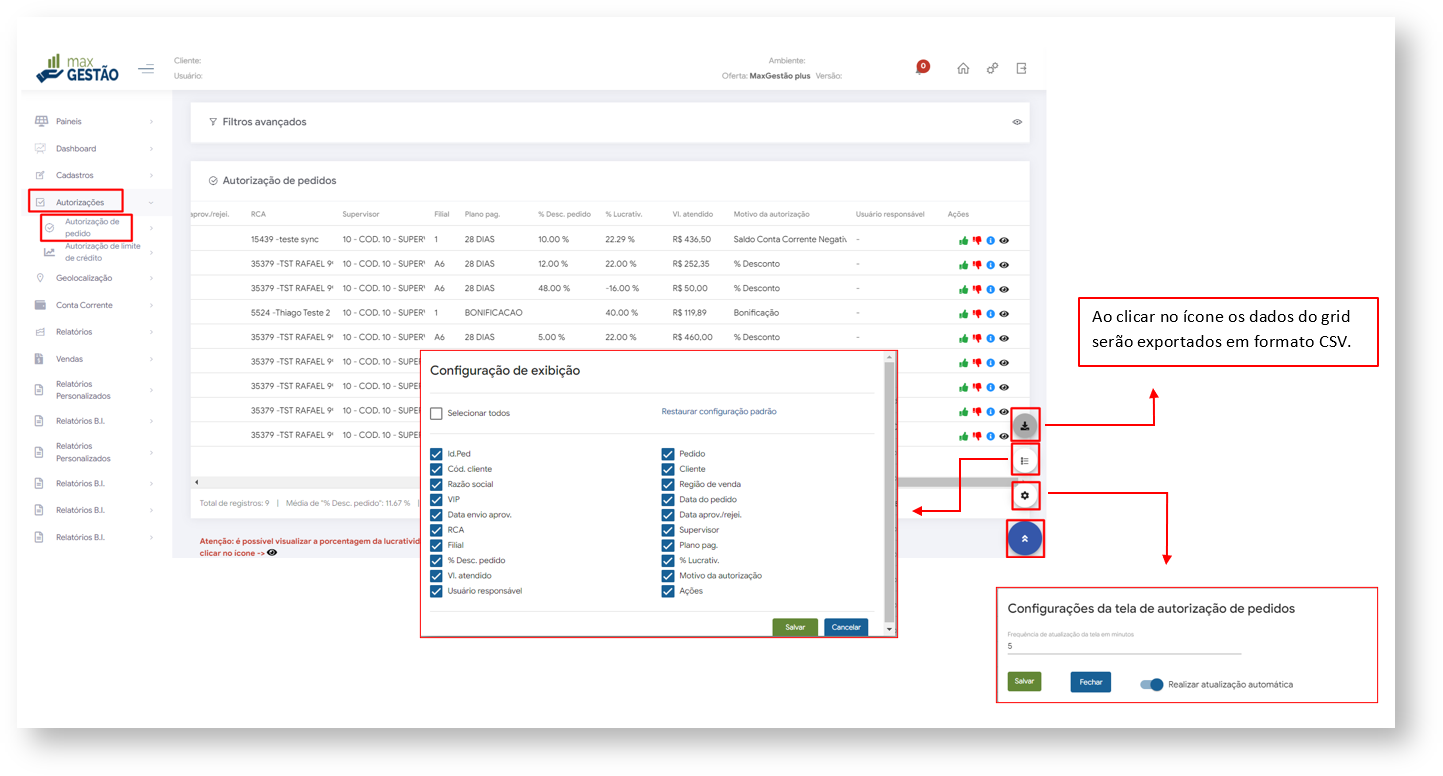 6.2 Após configurado na tela de autorização de pedidos poderá ser visualizado o ícone