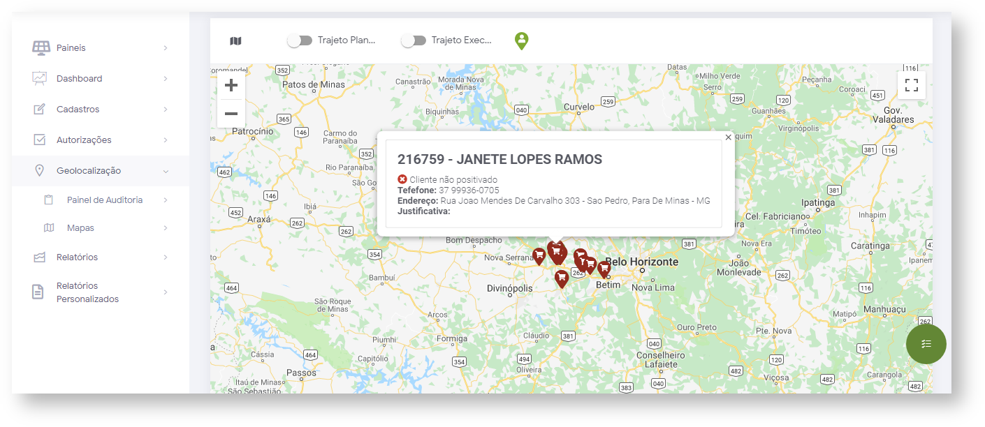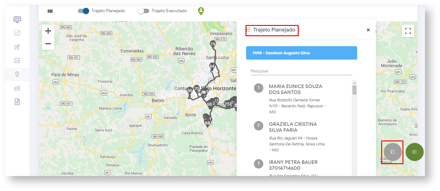 6.2 - Após clicar em Ver cliente, clique na aba Trajeto planejado no canto esquerdo superior da tela, surgirá um ícone