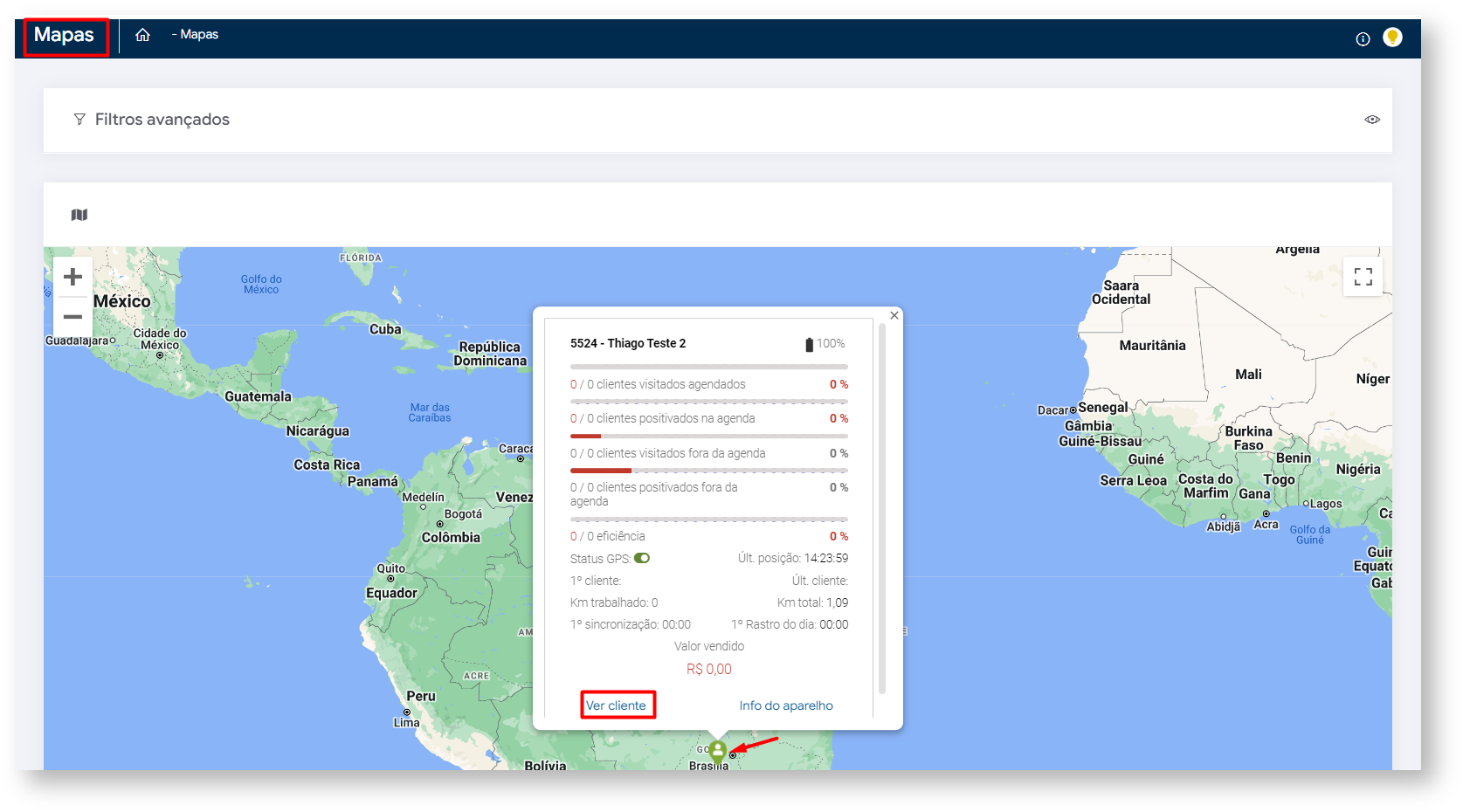 6.1 - Clique no ícone do vendedor no mapa, marque a opção Ver cliente;