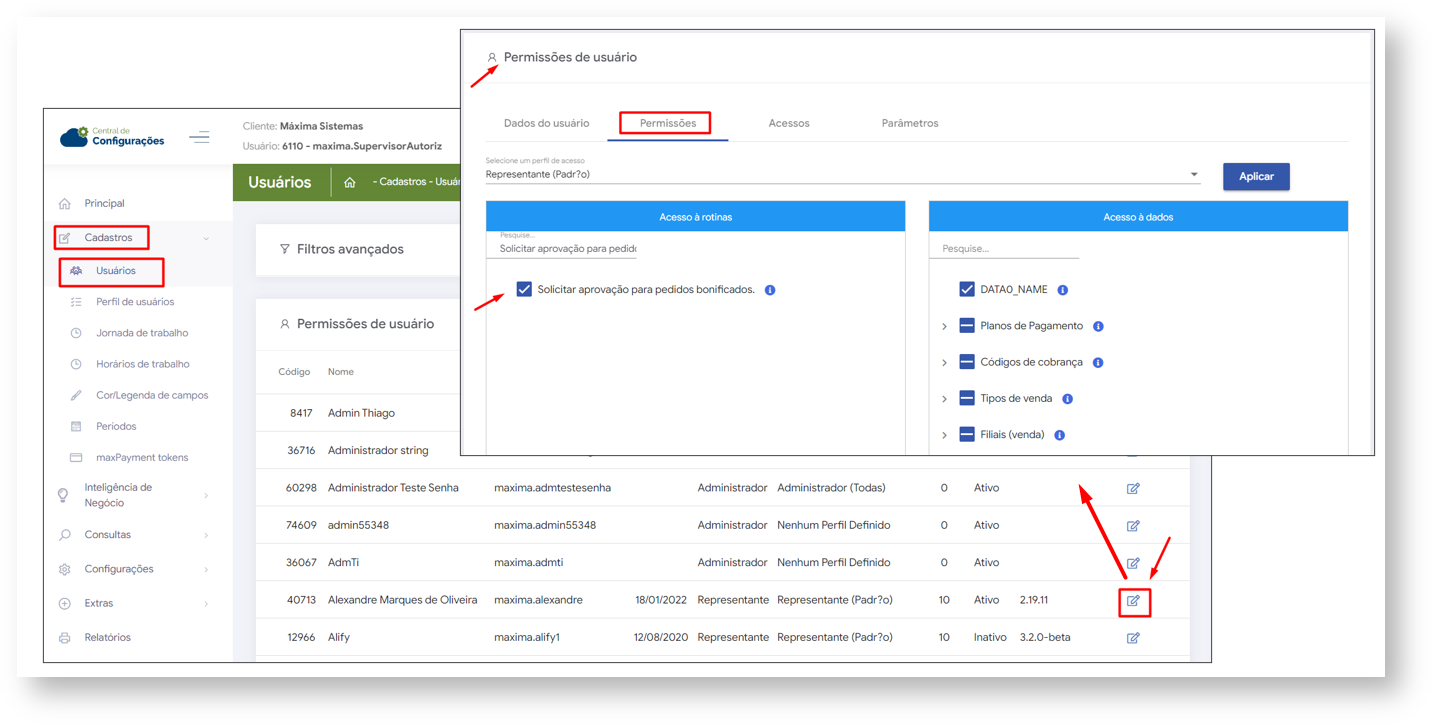 6- No quadro de Acesso à Rotinas verifique se a permissão Solicitar aprovação para pedidos bonificados está habilitada