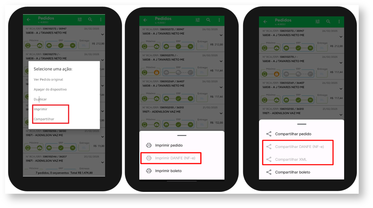 3- Selecione a opção que deseja, Compartilhar ou Imprimir.