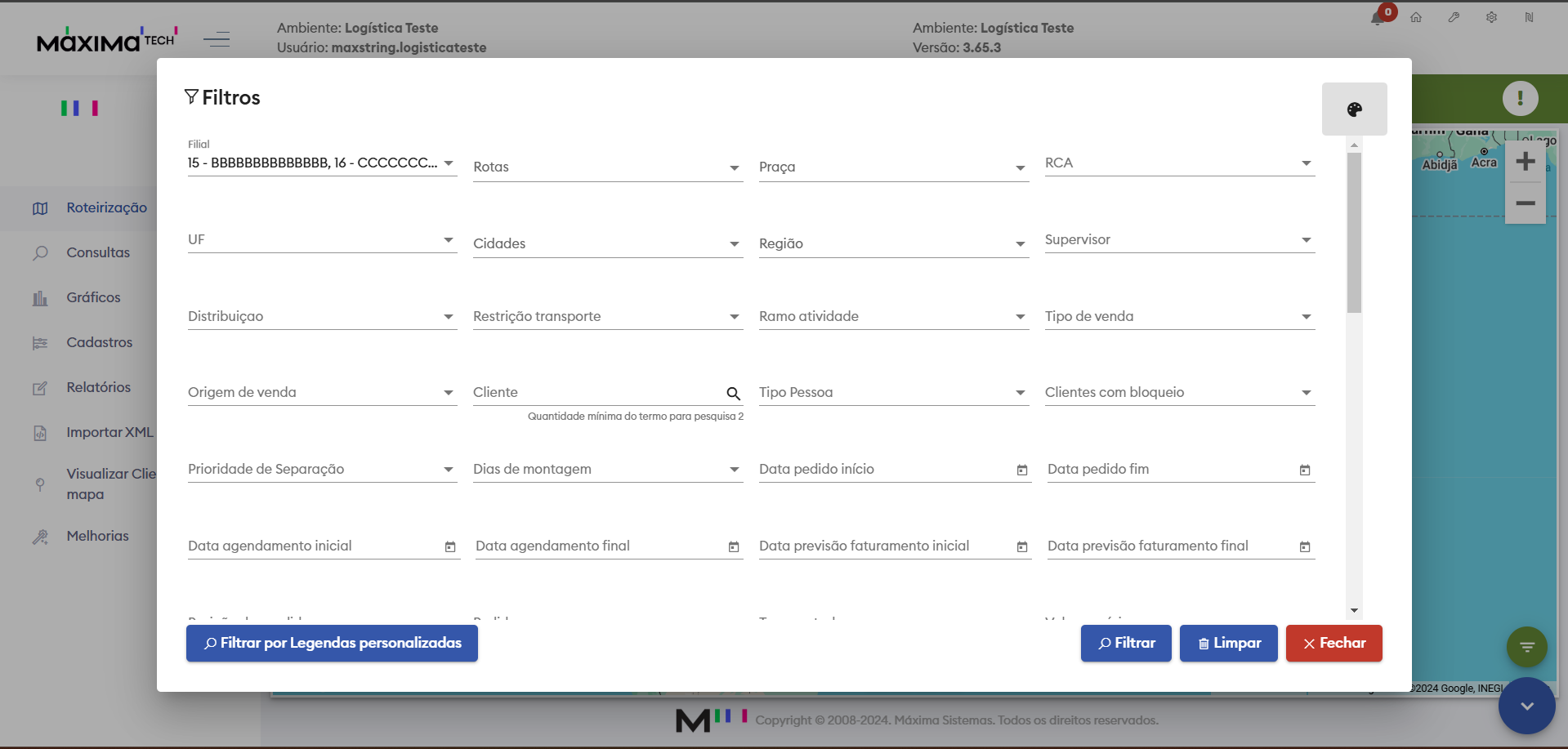 - Preencha o filtro da forma que precisar e clique em "Filtrar".
