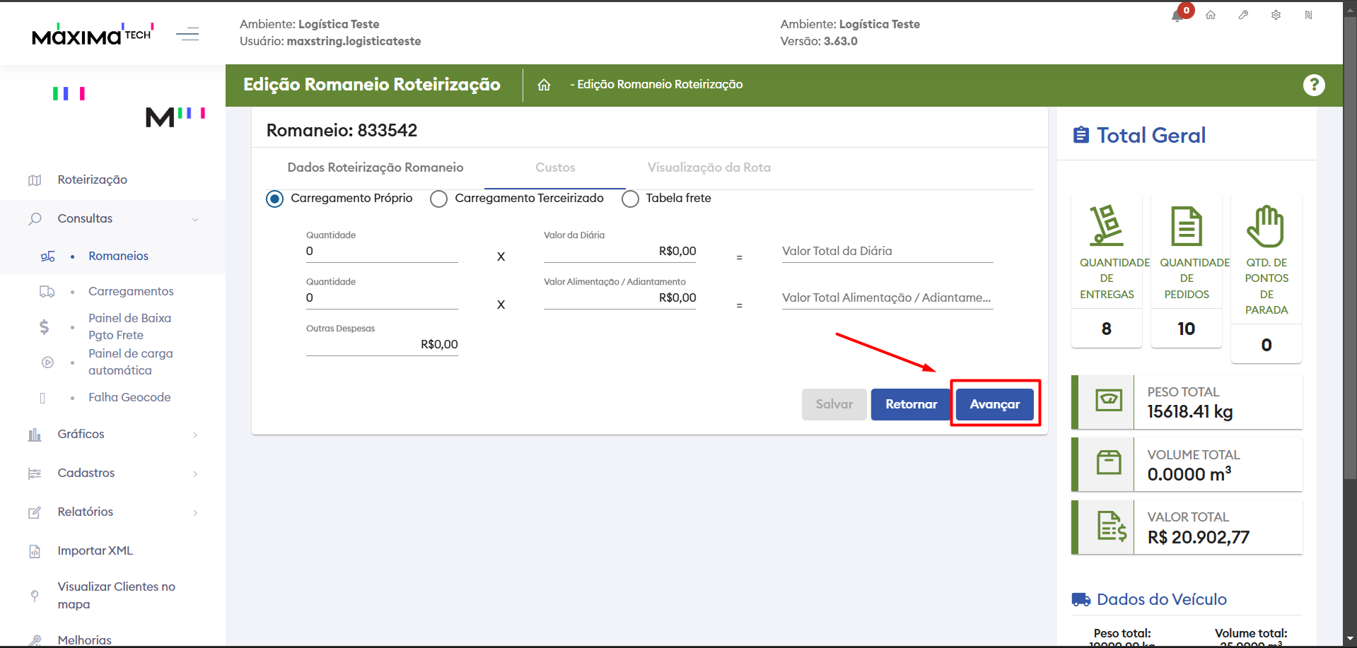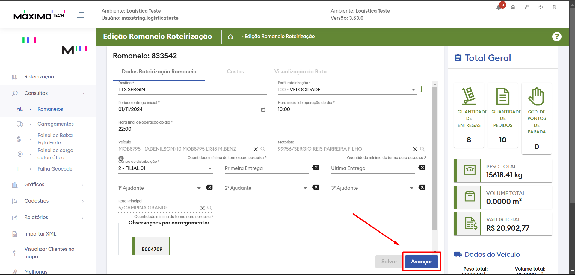 Ajustes de rota: Em situações de imprevistos, como bloqueios de estrada, o romaneio pode ser reordenado para seguir uma nova rota.
