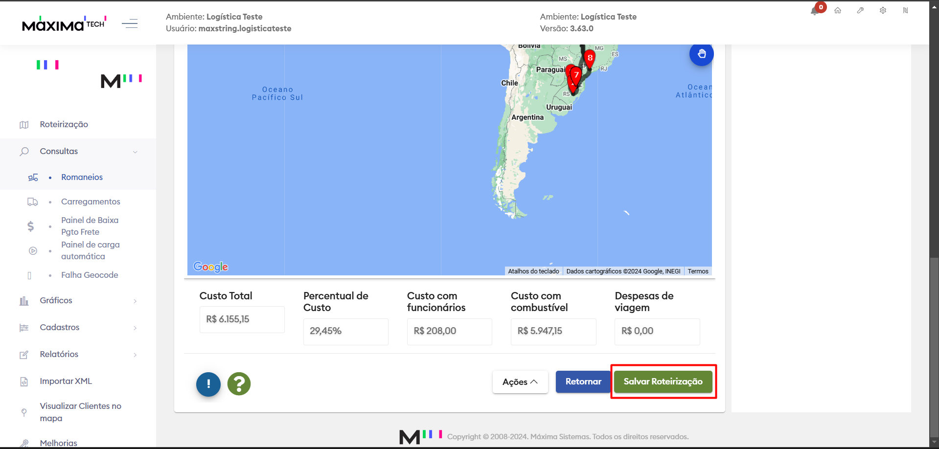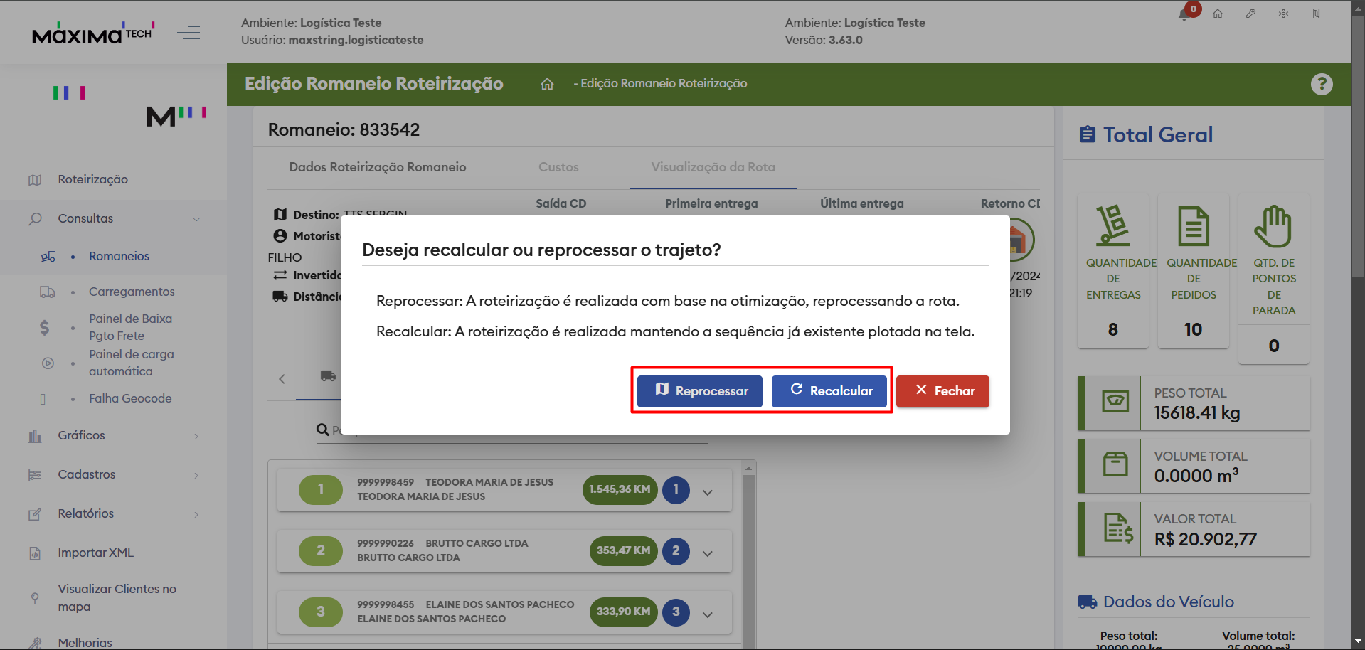 Reprocessar: Reprocessa a rota de entrega e salva as alterações.
