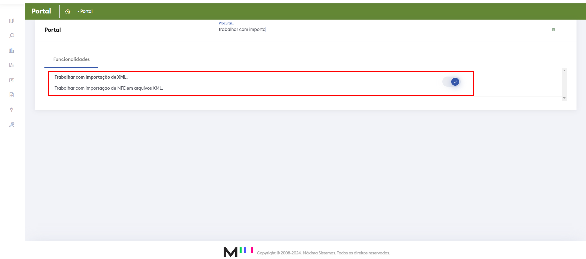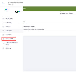 - Acessar o menu lateral esquerdo e ir em "Importar XML"