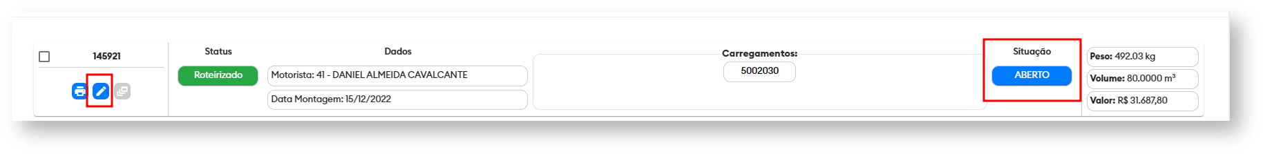 No carregamento que deseja editar os dados de roteirização e clicar no seguinte ícone: