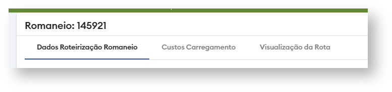 ATENÇÃO: Caso o Romaneio esteja com Status ‘Roteirizado’ a tela será aberta já na aba ‘Visualização de Rota’ e caso não esteja roteirizado será aberto na aba ‘Dados Roteirização Romaneio’ como exemplificado na imagem abaixo: