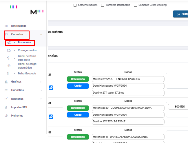 Vale ressaltar que caso o usuario queira, pode ser alterado o destino de ambos carregamentos que estão sendo gerados,