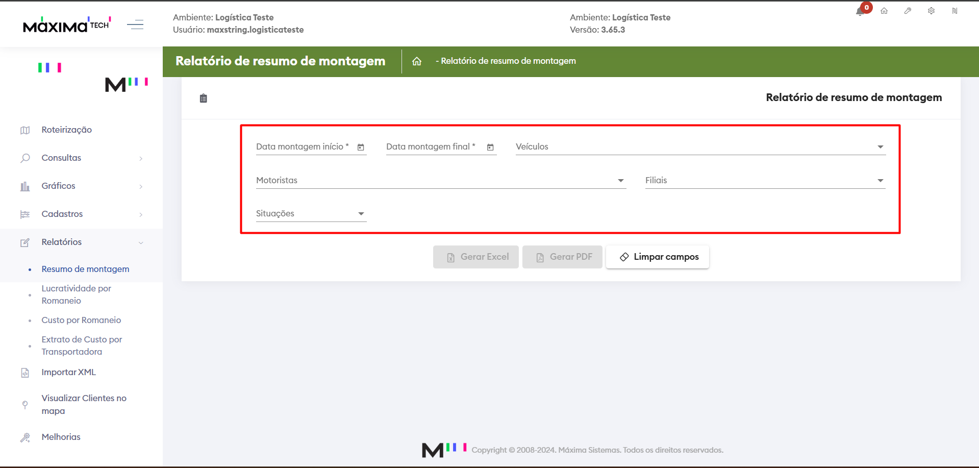Controle de peso, volume e valor da carga: O relatório permite que o usuário visualize separadamente o peso, volume e valor total de cada carga, possibilitando a análise do uso dos veículos e o controle eficiente de recursos logísticos.